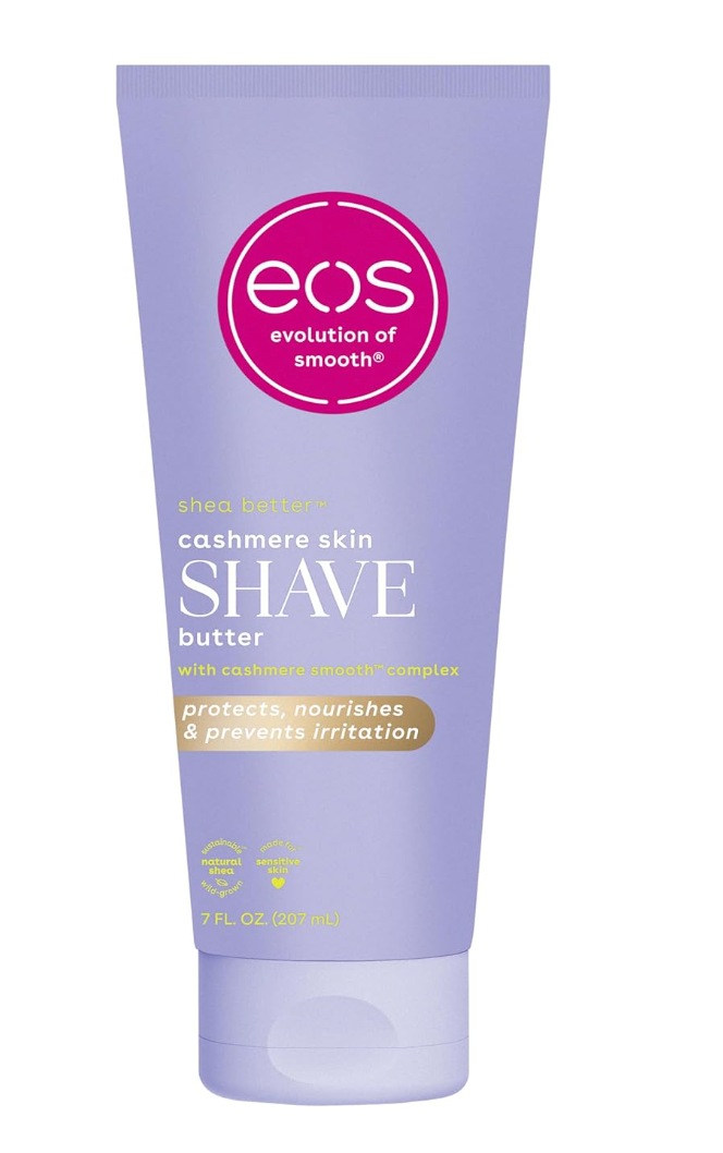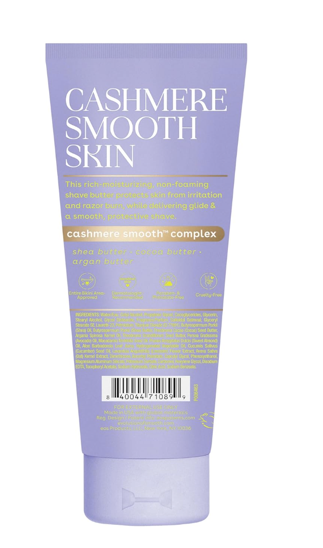 EOS Cashmere Skin Collection Shave Butter with Vanilla Cashmere scent provides a smooth, non-foaming shave. Rich in hydration, it softens and nourishes skin while protecting against irritation. 7 fl oz.