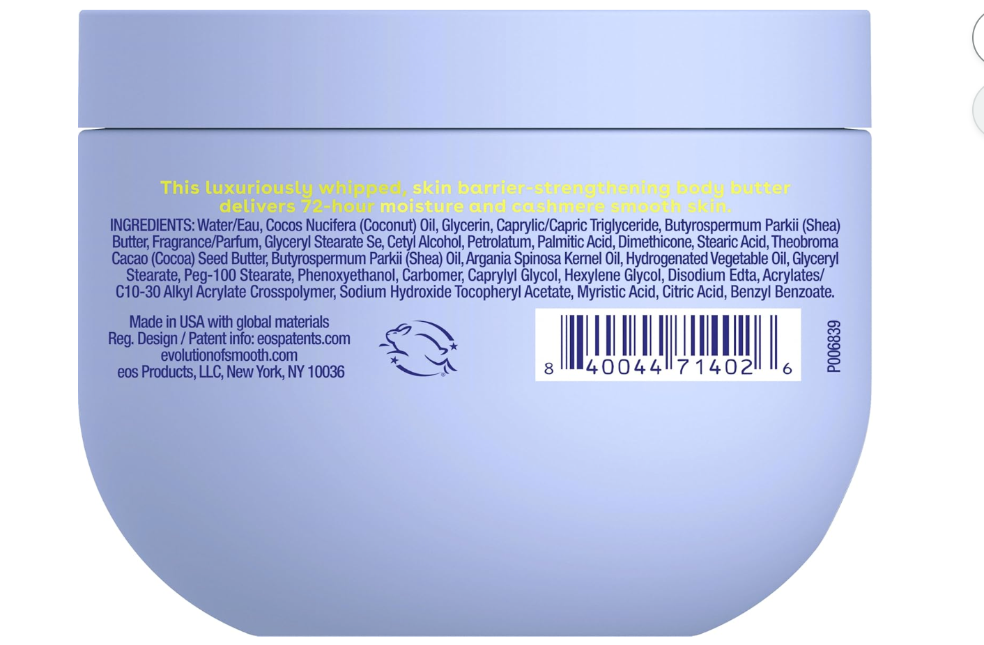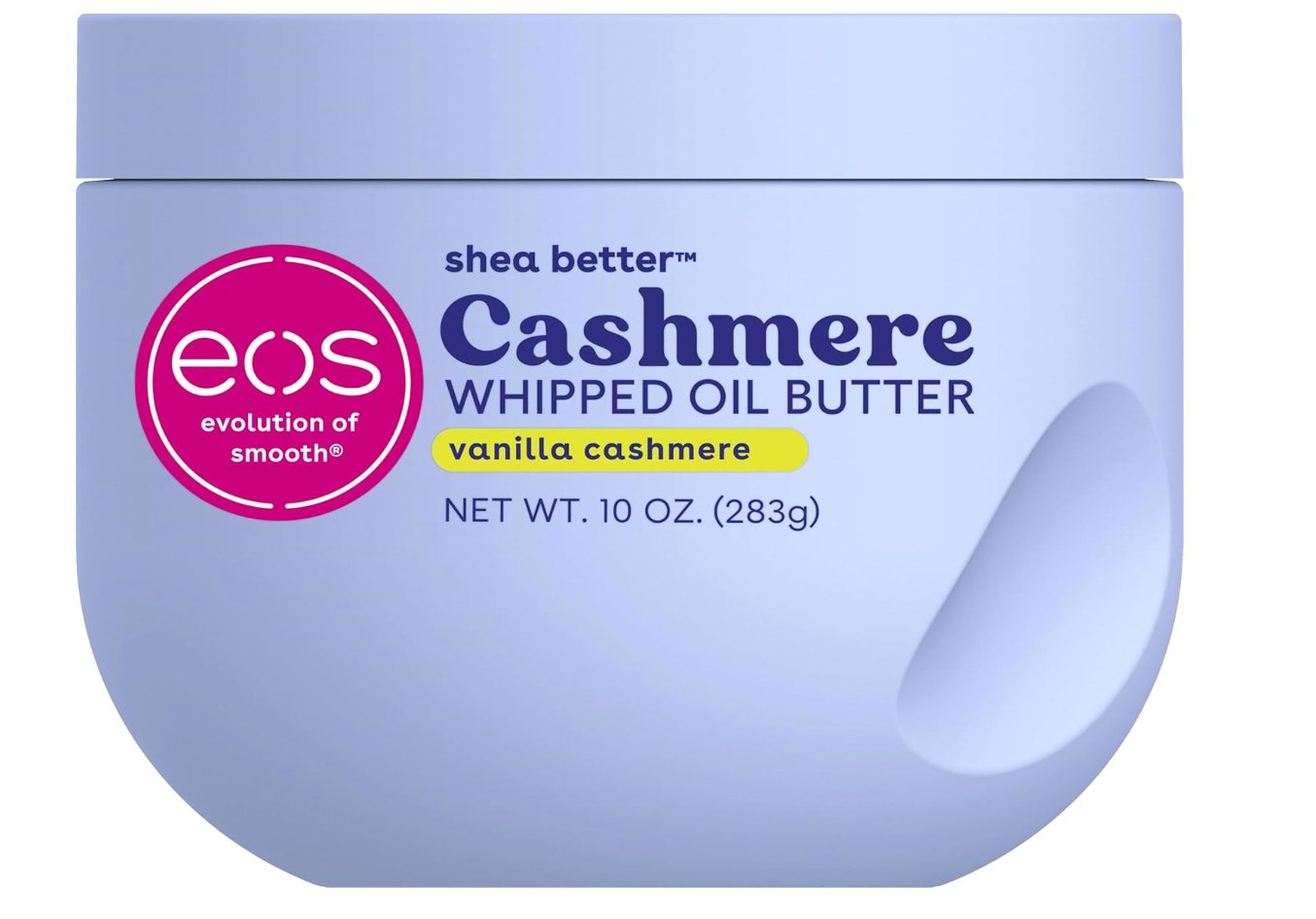 Indulge your skin with EOS Cashmere Whipped Oil Body Butter in Vanilla Cashmere. This rich, whipped formula delivers up to 72 hours of weightless moisture, leaving dry skin soft, smooth, and deeply hydrated. Perfect for daily body care – 10 oz jar.