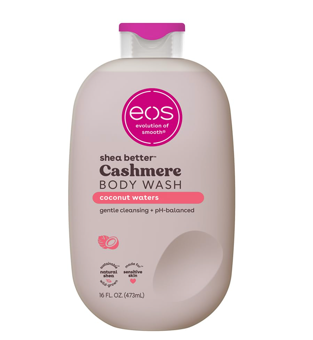 Pamper your sensitive skin with eos Shea Better Cashmere Body Wash. Enriched with nourishing coconut waters, this pH balanced creamy gel formula moisturizes and nourishes, leaving your skin feeling soft and smooth. Free of parabens and phthalates, it's a luxurious treat for your body.