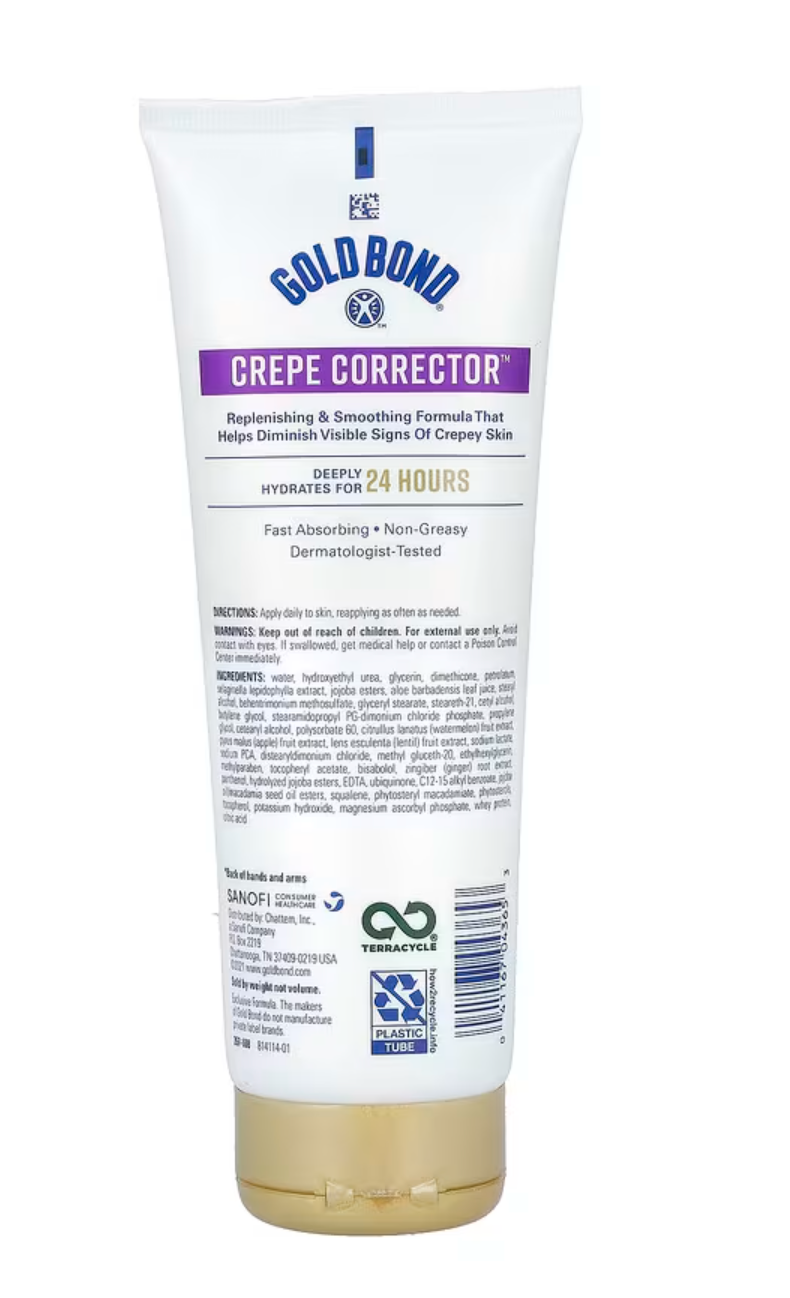 Indulge in luxury with Gold Bond's Age Renew Crepe Corrector Body Lotion. This 8 oz (226 g) lotion is specially crafted to target crepey skin and restore its youthful appearance. Experience the benefits of improved elasticity and smoother texture, all while being enveloped in a sophisticated and exclusive scent.