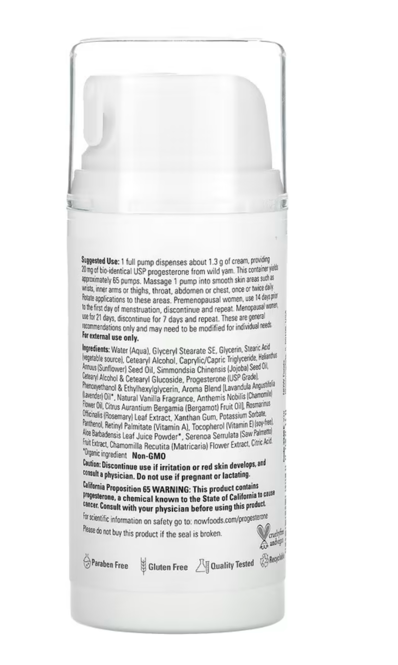 Achieve balance and calm with NOW Foods Solutions Progesterone Cream. Made with natural progesterone from wild yam, this skin cream helps to balance hormone levels and promote relaxation. The calming lavender scent adds a touch of luxury to your skincare routine.