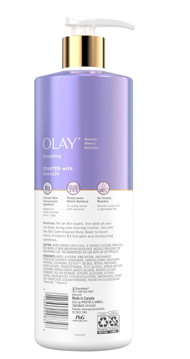 Olay Retinol Body Lotion 502ml – Smoothing & Hydrating with Vitamin B3, 24hr Moisture, Fast Absorbing, All Skin Types