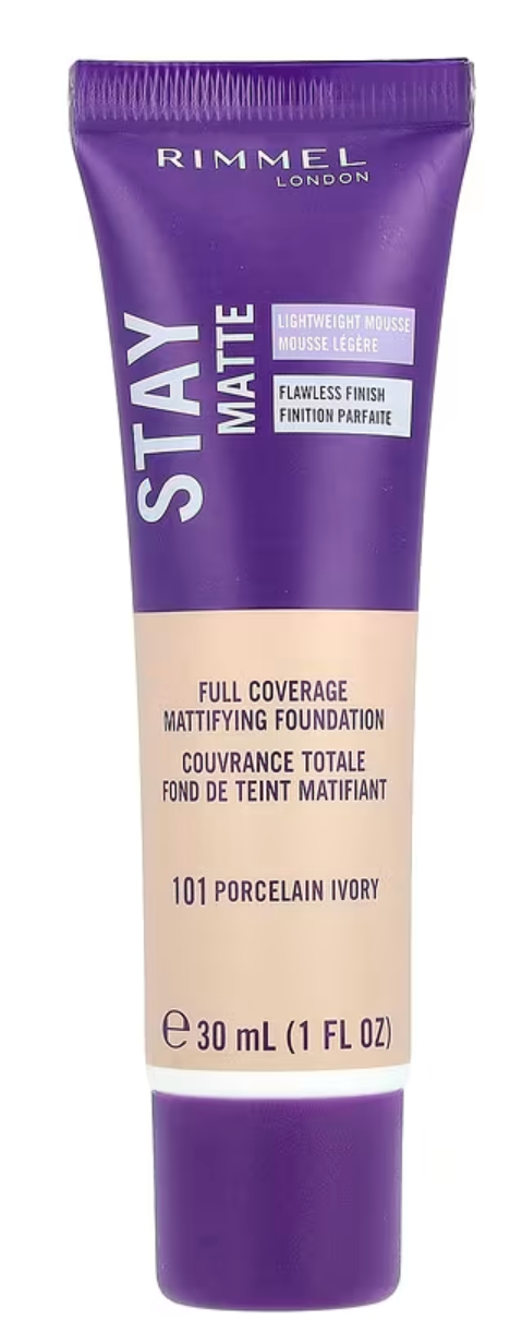 Rimmel London, Stay Matte, Full Coverage Mattifying Foundation, 101 Porcelain Ivory, 1 fl oz (30 ml)