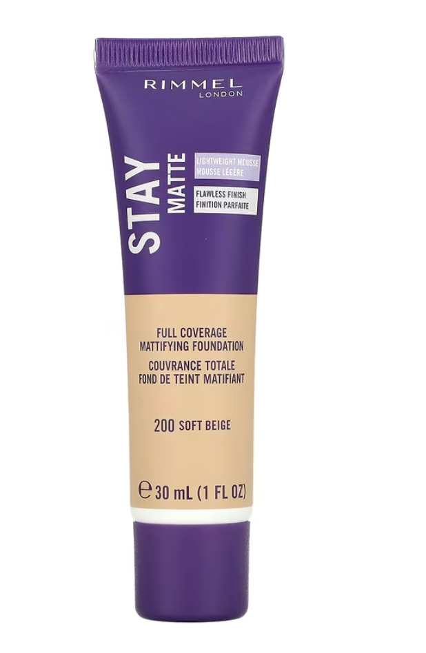 Rimmel London, Stay Matte, Full Coverage Mattifying Foundation, 200 Soft Beige, 1 fl oz (30 ml)