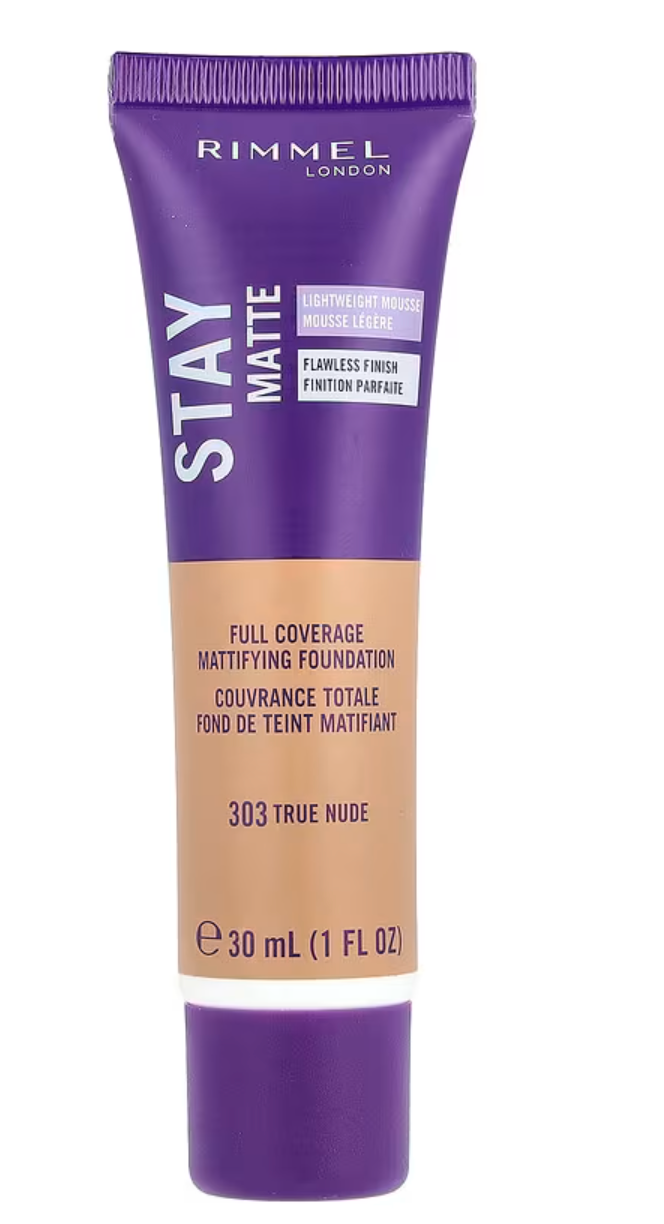 Rimmel London, Stay Matte, Full Coverage Mattifying Foundation, 303 True Nude, 1 fl oz (30 ml)