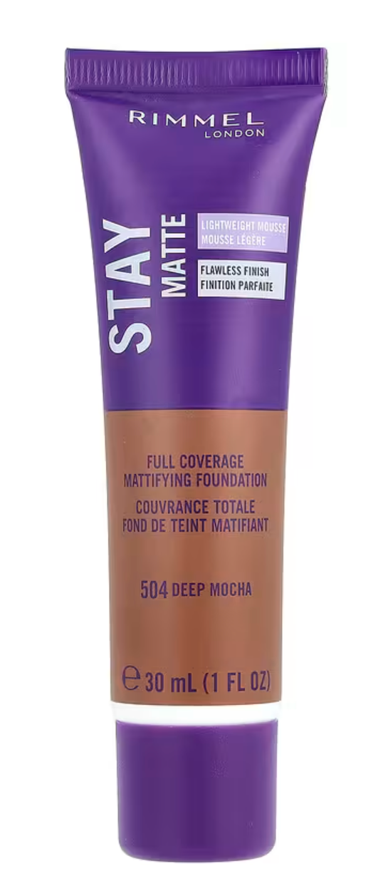 Rimmel London, Stay Matte, Full Coverage Mattifying Foundation, 504 Deep Mocha, 1 fl oz (30 ml)