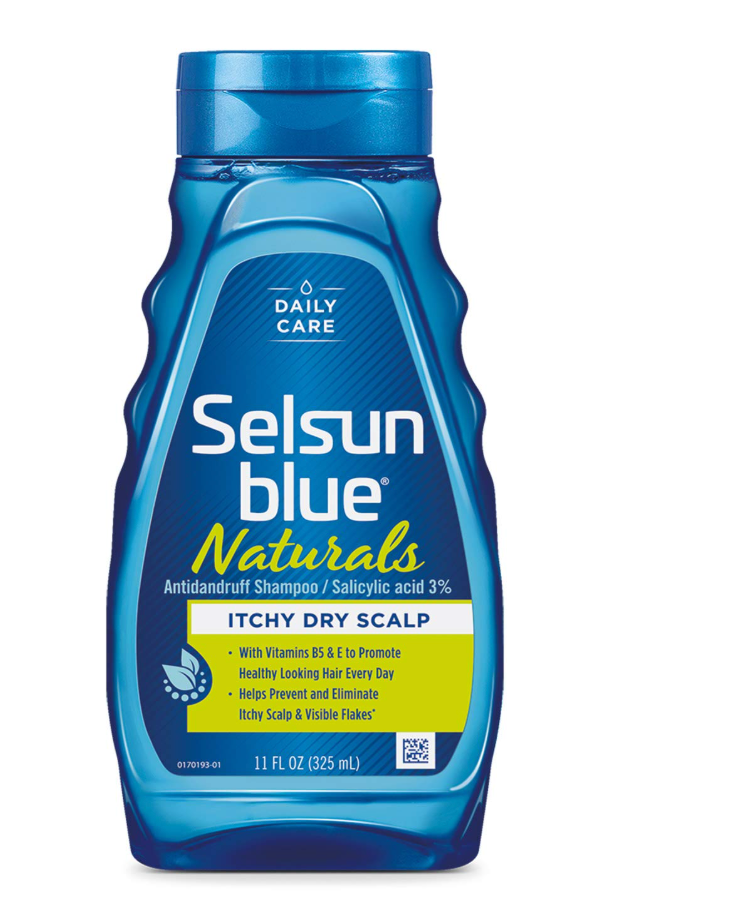 Selsun Blue Naturals Anti-Dandruff Shampoo (11 fl oz). Extra-hydrating formula with Vitamins B5 & E and 3% Salicylic Acid to help control dandruff, soothe itchy scalp, and leave hair clean and refreshed. Suitable for daily use.