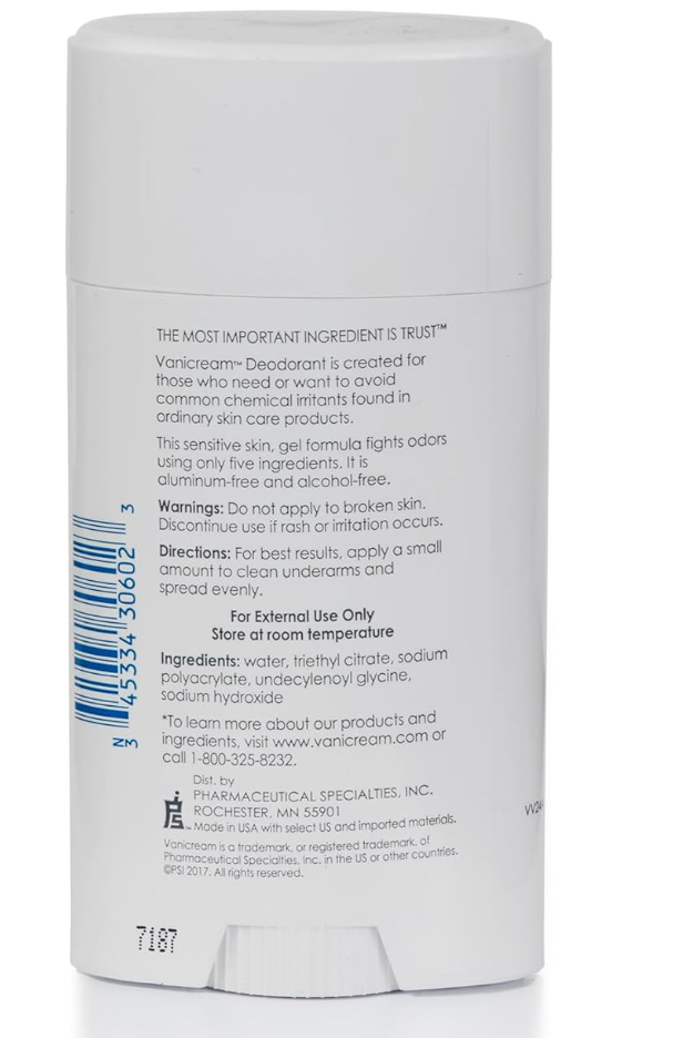 Vanicream Aluminum-Free Gel Deodorant - 2 oz - Unscented Formula for Sensitive Skin